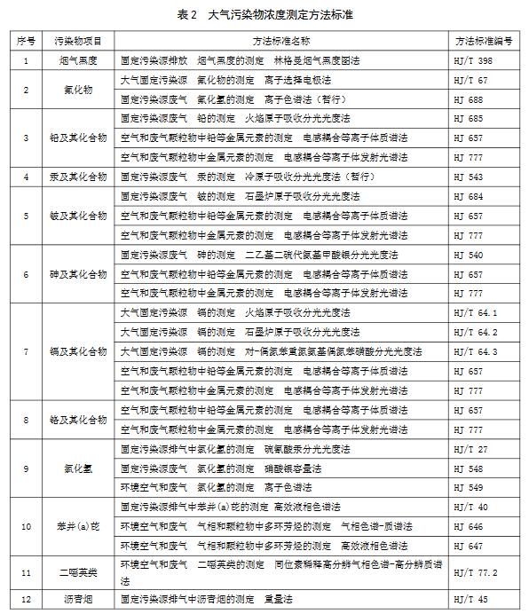 5.1.5對大氣污(wu)染物排放(fang)濃度的(de)測定采用表(biao)2所列的(de)方法(fa)標準(zhun)。本標準(zhun)發布(bu)實施后(hou),有新發布(bu)的(de)國家(jia)環境監測分析方法(fa)標準(zhun),其(qi)方法(fa)適用范圍相(xiang)同的(de),也適用于本排放(fang)標準(zhun)對應(ying)污(wu)染物的(de)測定。