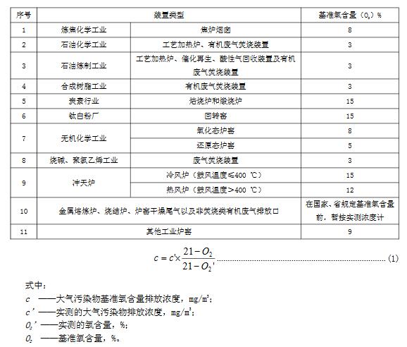 5.2大(da)氣污染(ran)物基(ji)準(zhun)氧含(han)量排放濃度(du)折算方法實測的大(da)氣污染(ran)物排放濃度(du),應按表3和公(gong)式(1)折算為(wei)基(ji)準(zhun)氧含(han)量排放濃度(du)。國家(jia)和山東省規定了行業單(dan)位產品基(ji)準(zhun)排氣量的,按單(dan)位產品基(ji)準(zhun)排氣量進行折算。