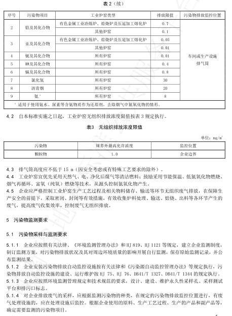 氮(dan)氧化物(wu)(以(yi)NO2計)排放極限(xian):耐(nai)火材(cai)料工業(ye)干燥及燒(shao)成窯100mg/m3;剛玉類(lei)工業(ye)熔煉(lian)爐、熔化爐、豎窯:300mg/m3。