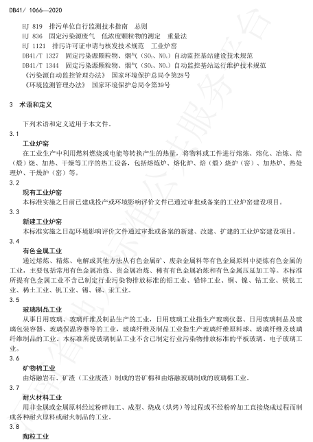 2020年4月10日(ri),河(he)南(nan)(nan)(nan)省市場(chang)監督管理局(ju)、河(he)南(nan)(nan)(nan)省生態環境廳在鄭(zheng)州(zhou)主持召開了(le)地方標準審查會,對河(he)南(nan)(nan)(nan)2015年發布的(de)(DB41/1066-2015)進(jin)行了(le)修訂。2020年5月19日(ri),河(he)南(nan)(nan)(nan)省市場(chang)監督管理局(ju)以2020年29號公告批準發布了(le)新修訂的(de)《工(gong)業(ye)爐窯大氣污染物排(pai)放標準》(DB41/1066-2020),2020年6月1日(ri)起實施。