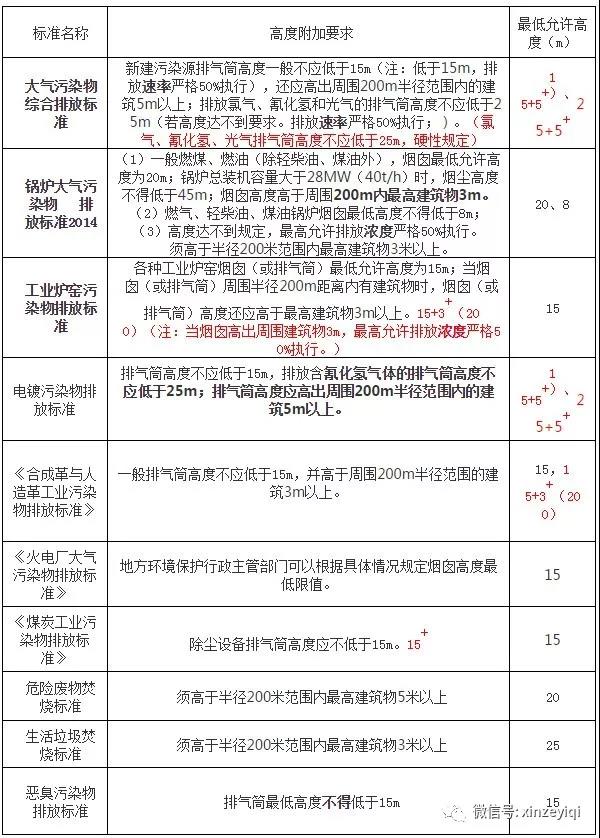 二(er)、各(ge)大(da)氣(qi)排放標準對(dui)排氣(qi)筒高度的規定