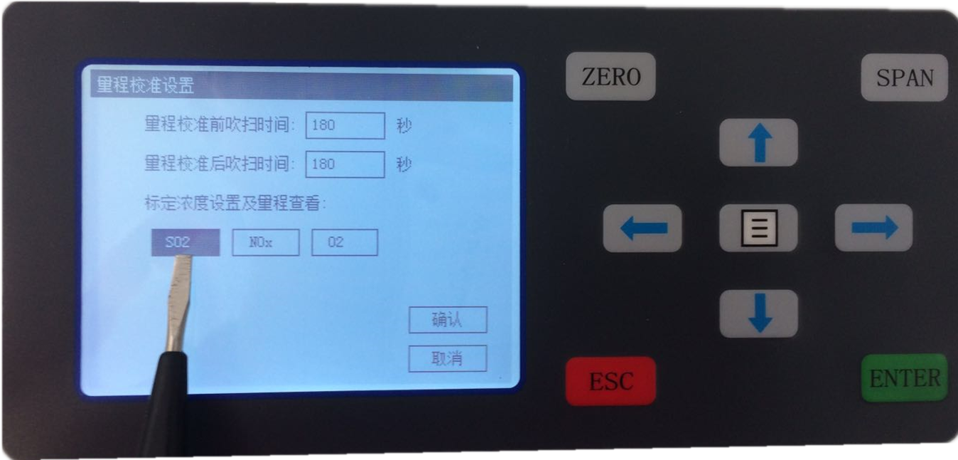 2.5 SO2標氣濃度值設置完成,按ESC返回上一級后,選擇(ze)NOx: