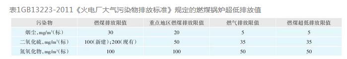 GB13223-2011《火電(dian)廠大氣污染物排放(fang)標準》確定(ding)的(de)燃煤鍋爐超低排放(fang)值見(jian)表(biao)1。