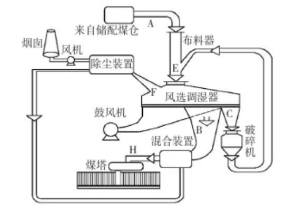 圖3 風(feng)動選擇煤調濕工藝流(liu)程