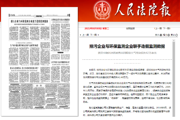 2021年8月3日,《人民法院報》關注武漢市中級人民法院宣判的(de)一起大氣污(wu)染民事(shi)公益訴訟案件。現全文刊載如下: