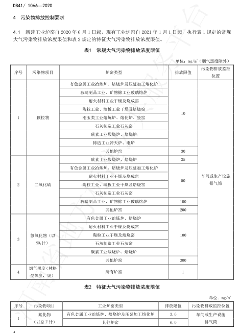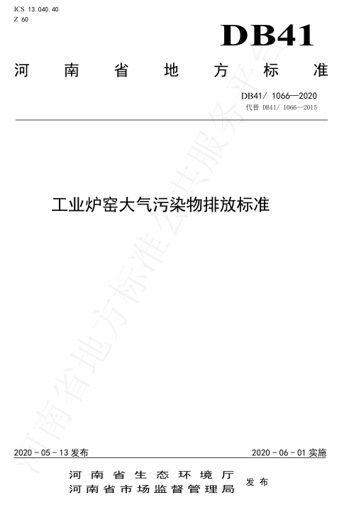 2020年4月10日(ri),河(he)南(nan)(nan)(nan)省市場(chang)監督管理局(ju)、河(he)南(nan)(nan)(nan)省生態環境廳在鄭(zheng)州(zhou)主持召開了(le)地方標準審查會,對河(he)南(nan)(nan)(nan)2015年發布的(de)(DB41/1066-2015)進(jin)行了(le)修訂。2020年5月19日(ri),河(he)南(nan)(nan)(nan)省市場(chang)監督管理局(ju)以2020年29號公告批準發布了(le)新修訂的(de)《工(gong)業(ye)爐窯大氣污染物排(pai)放標準》(DB41/1066-2020),2020年6月1日(ri)起實施。