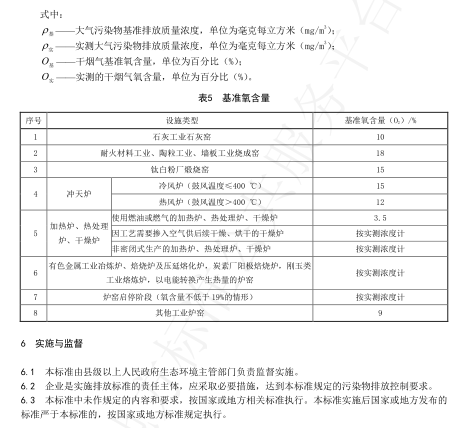 基(ji)準氧含(han)量(O2):耐(nai)火材料工業燒(shao)成窯(yao):18/%;剛玉類工業熔(rong)煉爐、以電(dian)能轉換產(chan)生熱量的各類爐窯(yao):按實(shi)測(ce)濃度(du)計;爐窯(yao)啟停階(jie)段(氧含(han)量不低于(yu)19%的情(qing)形):按實(shi)測(ce)濃度(du)計等。