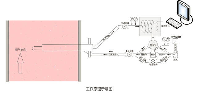 預處理(li)模塊尾(wei)氣(qi)(qi)經采樣探頭重新返(fan)回煙道(dao)。所需射流氣(qi)(qi)、吹掃(sao)氣(qi)(qi)均由潔(jie)凈風(feng)機單元(yuan)產生,吹掃(sao)氣(qi)(qi) 用于(yu)清潔(jie)煙塵儀的(de)光學部件,確保系(xi)統長期可靠工作。