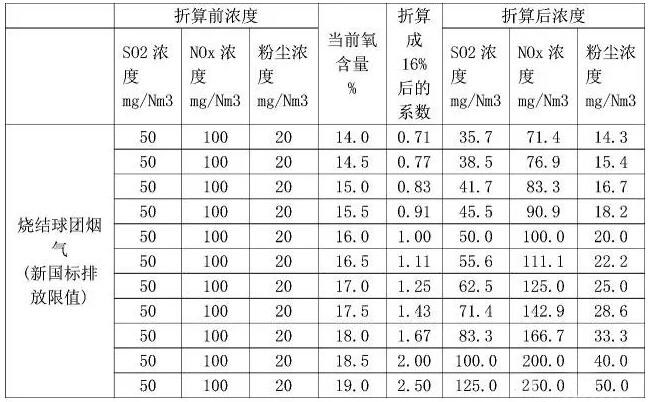表(biao)1排放濃度按不同(tong)氧含量折(zhe)算后的濃度