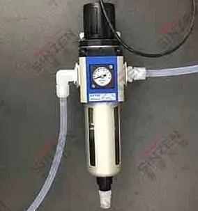3、因壓(ya)縮(suo)空氣(qi)(qi)(qi)(qi)的(de)(de)品質(zhi)很(hen)差,含(han)(han)水(shui)含(han)(han)油很(hen)大(da),原(yuan)先的(de)(de)空氣(qi)(qi)(qi)(qi)過(guo)濾器(qi)不(bu)能滿足過(guo)濾的(de)(de)要求,樣氣(qi)(qi)(qi)(qi)中(zhong)含(han)(han)水(shui)率高與其(qi)也是有(you)關系的(de)(de),而且(qie)油份(fen)容易附(fu)著在探頭(tou)上造成積灰,影(ying)響抽氣(qi)(qi)(qi)(qi)量,嚴重時甚(shen)至無法(fa)抽下來空氣(qi)(qi)(qi)(qi)。因此我們在取(qu)樣探頭(tou)反吹壓(ya)縮(suo)空氣(qi)(qi)(qi)(qi)管道上加(jia)裝氣(qi)(qi)(qi)(qi)液分(fen)離器(qi),該(gai)氣(qi)(qi)(qi)(qi)液分(fen)離器(qi)可以過(guo)濾掉壓(ya)縮(suo)空氣(qi)(qi)(qi)(qi)中(zhong)的(de)(de)水(shui)份(fen)和油份(fen),不(bu)讓探頭(tou)反吹時將(jiang)壓(ya)縮(suo)空氣(qi)(qi)(qi)(qi)中(zhong)的(de)(de)水(shui)和油吹入附(fu)著在取(qu)樣探頭(tou)內。