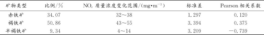 表1混勻(yun)礦中(zhong)鐵礦粉的(de)礦物類(lei)型與煙氣中(zhong)NOx質量濃度的(de)相關分析