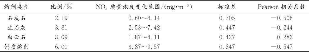 表(biao)2熔劑結構(gou)類型與NOx濃度的相關分析