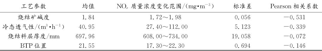 表4工藝參數(shu)與(yu)NOx質量濃度(du)的相關(guan)分析