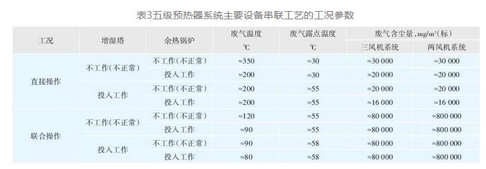 水(shui)泥窯尾廢氣處理系(xi)統都是(shi)按含生料磨烘干聯合(he)操作廢氣考慮的(de)(de),特點是(shi)工(gong)(gong)況參數常變(bian),以(yi)典型的(de)(de)五級預熱器系(xi)統主(zhu)設備串(chuan)聯工(gong)(gong)藝為例,即圖1、2示意的(de)(de)工(gong)(gong)藝,至(zhi)少(shao)可以(yi)產生如表3的(de)(de)工(gong)(gong)況參數。