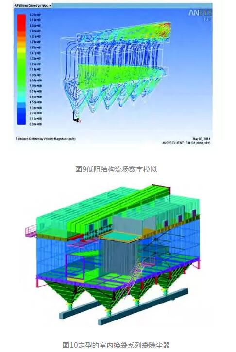 實際上,該綜(zong)合平臺(tai)是我(wo)們(men)在生產過(guo)程中分段研發(fa)的(de)(de)。首先(xian)通過(guo)數字流場計算的(de)(de)模擬,確(que)定了公(gong)司標準袋除塵器(qi)系列及多(duo)種非(fei)標改造的(de)(de)低阻結構(圖9、10)。