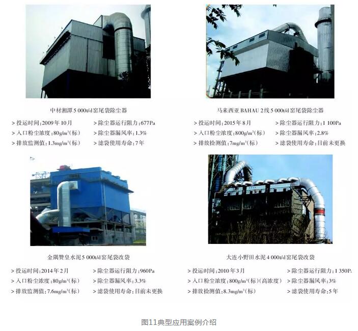 項(xiang)目技術(shu)(shu)成果(guo)應(ying)用(yong)在(zai)公司袋除塵器設計(ji)的四大產品系列和幾百臺“電(dian)改袋”除塵器改造,大大縮短了產品設計(ji)周期(qi),有(you)效提升了袋除塵器的各項(xiang)技術(shu)(shu)指標(biao)和工作(zuo)可靠性,穩定達到低排放效果(guo),設備平均運行阻力降(jiang)低,節能環保效果(guo)明顯(xian)。圖(tu)11為幾個典(dian)型(xing)應(ying)用(yong)案(an)例。