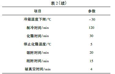 ( 2) 實際(ji)運(yun)行(xing)的氣(qi)(qi)量(liang)較低,遠達不(bu)到100Nm3 /h 的設計(ji)處理(li)量(liang),正常運(yun)行(xing)時,VOCs 治理(li)裝置氣(qi)(qi)體流(liu)(liu)量(liang)在(zai)(zai)20 ~ 50m3 之間(jian);( 3) 化(hua)霜時間(jian)不(bu)夠長,停止化(hua)霜溫度不(bu)夠高(gao),經(jing)手動化(hua)霜,大(da)量(liang)液體自(zi)冷箱(xiang)流(liu)(liu)出,實際(ji)運(yun)行(xing)中有機物在(zai)(zai)進(jin)入(ru)冷箱(xiang)后直接凝華,在(zai)(zai)冷箱(xiang)內壁結晶。