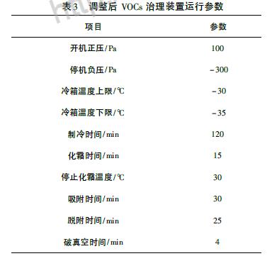 調(diao)整后VOCs 治理裝置主要運行參(can)數如表3。