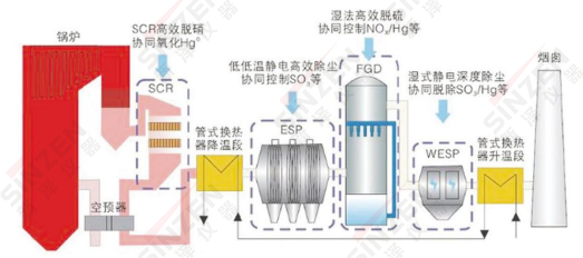 各個行業按照最新的排放標準,對于市場上現有的CEMS煙氣在線監測系統,很難(nan)滿(man)足其監(jian)測(ce)需求,尤其隨著(zhu)FGD、SCR等技術(shu)的發展,排放(fang)的監(jian)測(ce)數值也必將向著(zhu)更低(di)濃度的檢(jian)測(ce)發展。目(mu)前(qian)主流(liu)的超低(di)改造工藝流(liu)程圖如下: