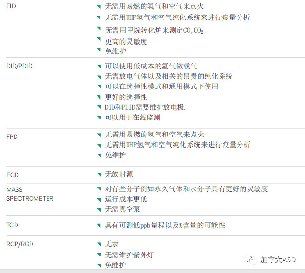 增強等離子體放電技術可以(yi)代替許多形式的檢測(ce)器,詳(xiang)見下表