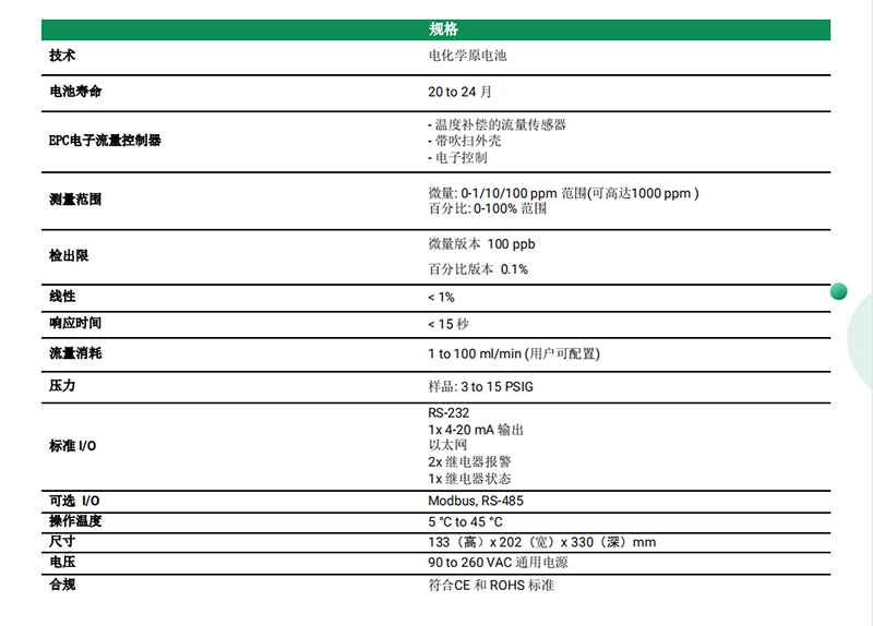 0-1/10/100 ppm 范圍 (可(ke)高達1000 ppm )